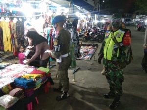 BARABAI-Petugas gabungan yang terdiri dari Kodim 1002/Barabai, Polres HST Serta Satpol PP menggelar Operasi penerapan Protokol Kesehatan (prokes) di komplek pasar Murakata Barabai. Selasa, (27/4/2021) malam.