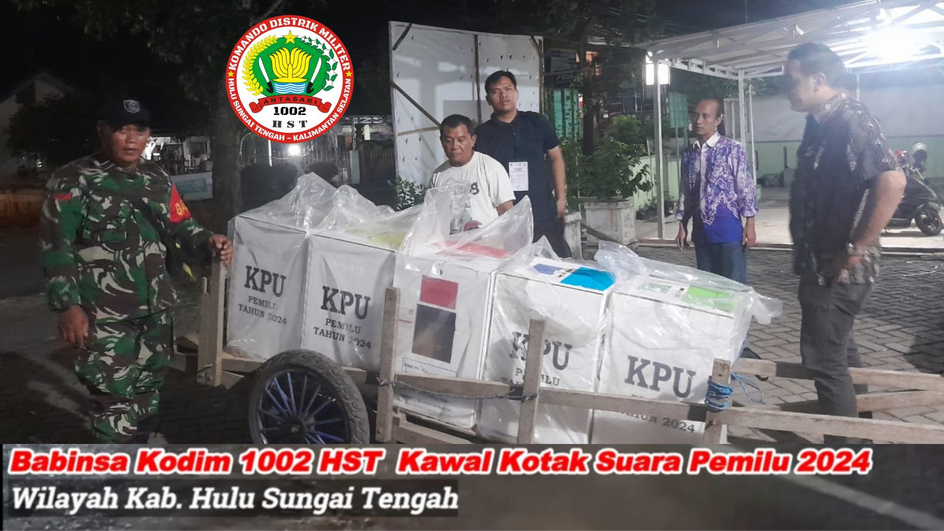 BARABAI-Pasca pemungutan suara Pemilu 2024, Babinsa Kodim 1002/HSt bersama dengan Bhabinkamtibmas melaksanakan pengawalan kotak suara dari TPS-TPS ke sekretariat desa (Kantor desa). Rabu (15/02/2024),