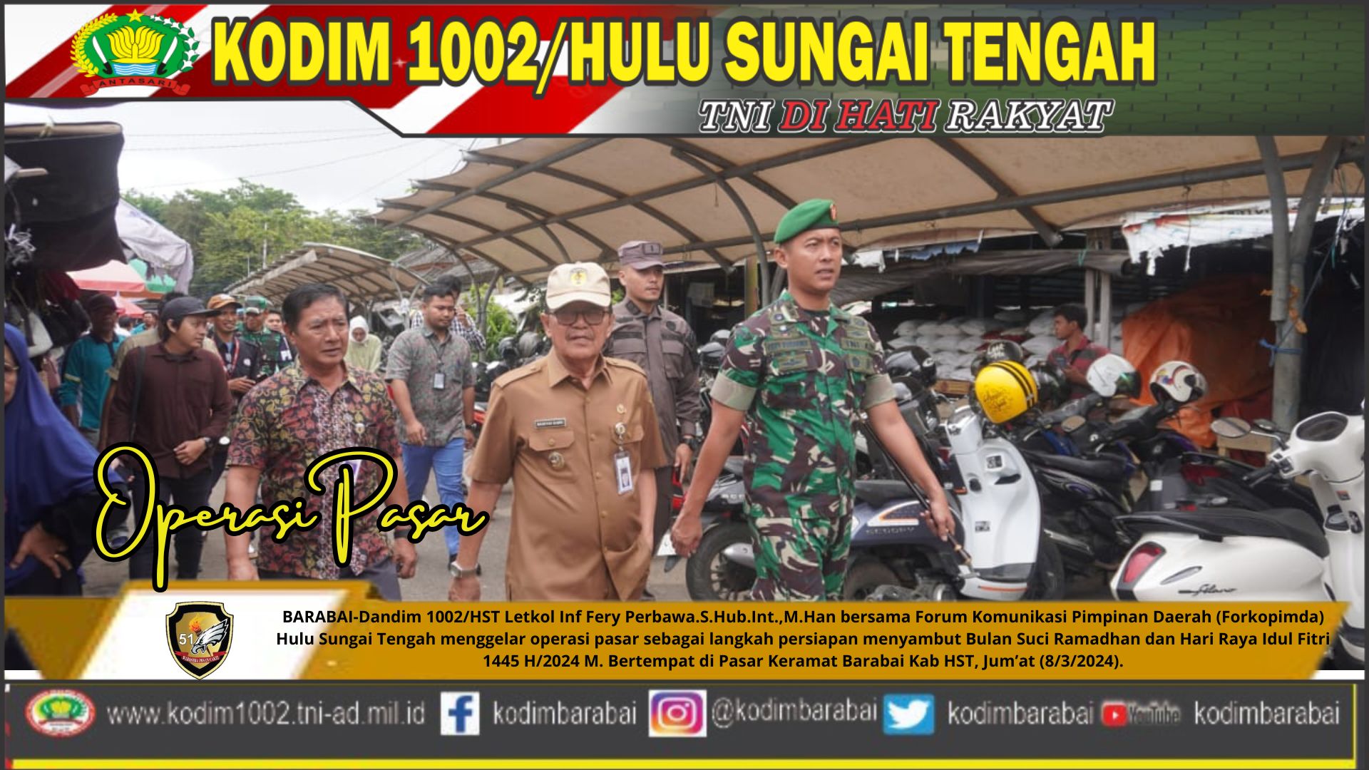 Dandim 1002/HST Letkol Inf Fery Perbawa.S.Hub.Int.,M.Han menyampaikan bahwa operasi pasar ini dilaksanakan sebagai upaya untuk menjaga stabilitas harga dan ketersediaan barang pokok bagi masyarakat selama bulan puasa dan saat perayaan Idul Fitri.