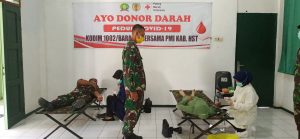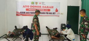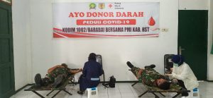 BARABAI – Dalam rangka mengantisipasi kekurangan persediaan darah ditengah mewabahnya Covid-19 Kodim 1002/Barabai bekerjasama dengan PMI Kabupaten Hulu Sungai Tengah menggelar kegiatan donor darah.Selasa (07/4).