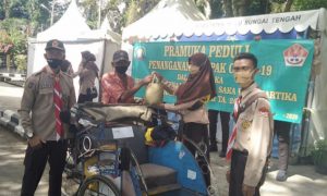 Seperti disampaikan oleh Pembina Harian Saka Wira Kartika Pangkalan Kodim 1002/Barabai Kapten Inf Moh.Alip Suroso, sebanyak 90 paket sembako dibagikan anak-anak kepada warga yang terdampak langsung dengan covid-19 diantara tukang kayuh becak yang ditemuinya dijalan dan warga kurang mampu langsung dari pintu ke pintu,”terangnya.