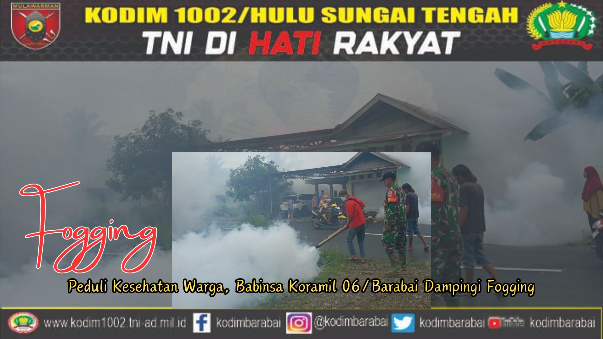 BARABAI-Babinsa Koramil 1002-06/Barabai Serda Budiono melaksanakan pendampingan kegiatan Fogging dari Dinas Kesehatan Kabupaten Hulu Sungai Tengah Dan Puskesmas Barabai, di Desa Banua Budi Kecamatan Barabai.Kamis (18/01/2024)
