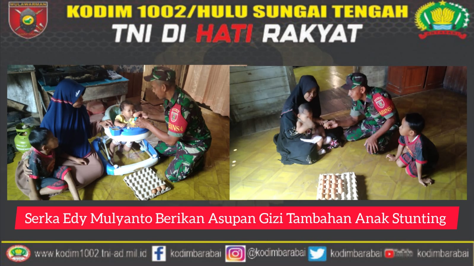 Saat dikonfermasi Serka Edy Mulyanto mengatakan bahwa sebagai seorang Babinsa yang menjadi perpanjangan dari Kodim 1002/HST mempunyai kewajiban untuk menjadi solusi dalam mengatasi Stunting dengan harapan bisa membantu pemerintah daerah dalam menekan angka Stunting di wilayah binaan,”terangnya
