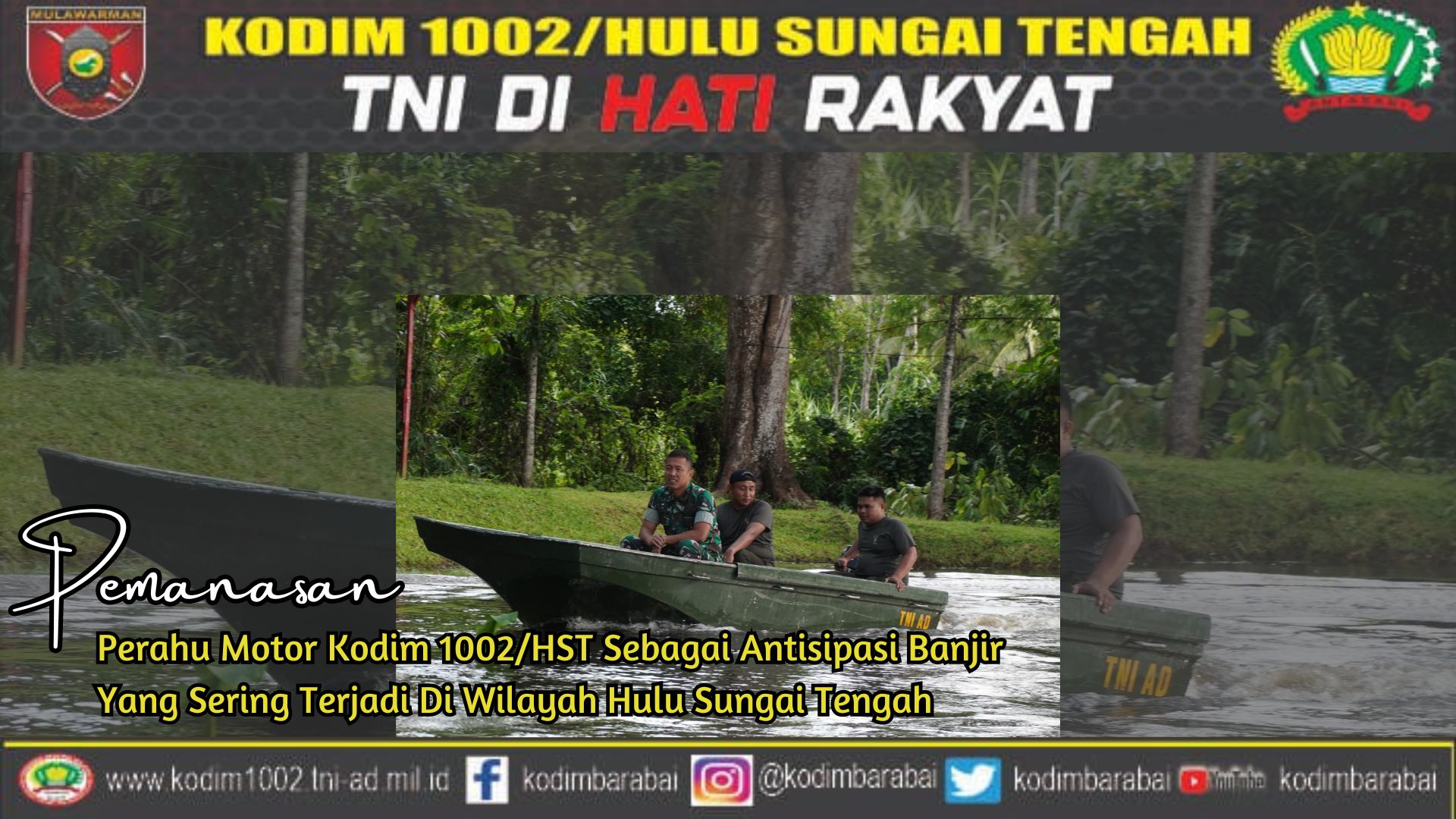 Seperti disampaikan oleh Dandim 1002/HST Letkol Inf Fery Perbawa.S.Hub.Int.,M.Han bahwa menghadapi musim hujan kita menyiapkan sarana dan prasana dalam mendukung pemerintah daerah dalam menghadapi musibah banjir, salah satunya dengan kita melakukan pemanasan perahu motor yang dimiliki oleh Kodim 1002/HST,”ujarnya
