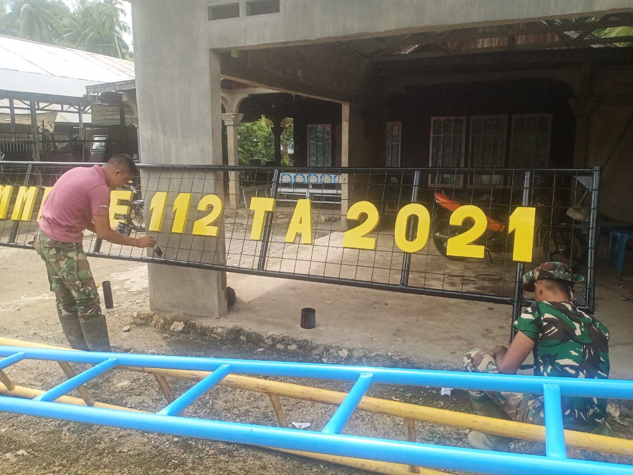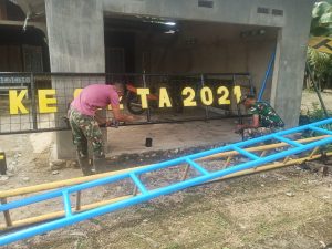 Sampai dengan hari ke-21 pelaksanaan TNI Manunggal Membangun Desa (TMMD) ke-112 Kodim 1002/HST pembangunan Gapura TMMD pada tahap pengecetan besi gapura oleh anggota Satgas, Selasa (05/10/21) pagi waktu setempat