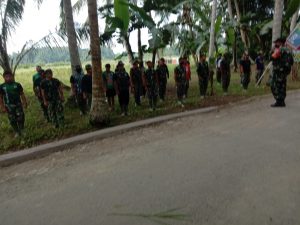 HULU SUNGAI TENGAH-Sejumlah Satuan Tugas (Satgas) TNI Manunggal Membangun Desa (TMMD) melaksanakan Apel Pagi di lokasi TMMD Ke-112 Kodim 1002/Hulu Sungai Tengah (HST) di Desa Rantau Keminting, Kecamatan Labuan Amas Utara. Minggu, (10/10/2021).