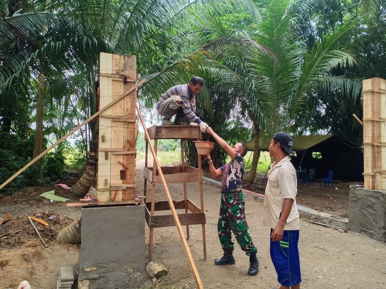 Sampai dengan hari ini, pembangunan Gapura TMMD sudah mencapai 15 persen dan pengecoran tiang gapura berjalan dengan lancar. Sabtu (11/09/21) kemarin sore