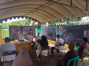BARABAI – Satgas TMMD ke-107 tahun 2020 Kodim 1002/Barabai menggandeng Dinas PMD (Pemerintahan Masyarakat Desa) Kabupaten Hulu Sungai Tengah untuk memberikan penyuluhan Pilkades (Pemilihan Kepala Desa) kepada warga masyarakat di lokasi TMMD.
