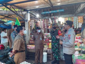 BARABAI-Komandan Kodim 1002/HST Letkol Kav Gagang Prawardhana.SIP.,M.Han bersama Wakil Buapti, Kapolres HST dan Tim Pengendalian Inflasi Daerah melaksanakan sidak sekaligus monitoring kebutuhan bahan pokok (Sembako) di Pasar Agrobisnis Barabai.Selasa (19/4).