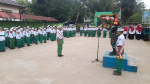 BARABAI-Plh. Danramil 1002-05/Pandawan Peltu Henri Murpianto menjadi Pembina dalam upacara pengibaran bendera merah putih di MIN 19 HST desa Kambat Kecamatan Kabupaten Hulu Sungai Tengah (HST) Kalimantan Selatan.Senin (29/08).