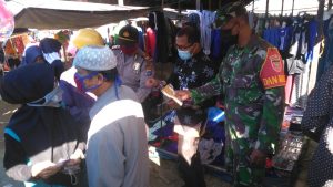 Pelda Riyanto bersama unsur muspika Kec.BAT keliling pasar sekaligus membagikan masker kepada warga yang tidak menggunakan masker.
