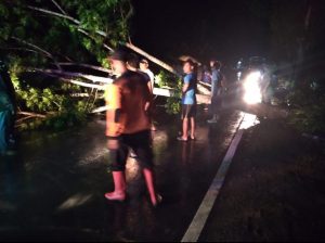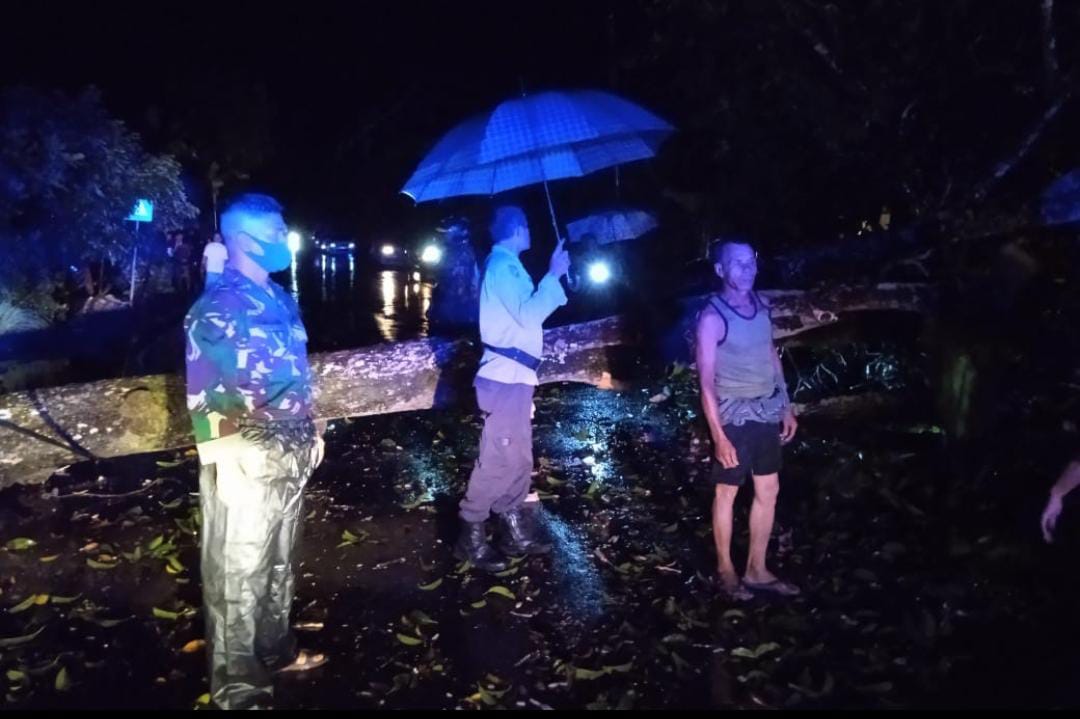 “Di tengah rintik hujan dibantu warga sekitar membersihkan pohon itu, kondisi jalan juga gelap karena listrik padam. Setelah pohon selesai di potong-potong, akhirnya lalu lintas kembali normal,” jelasnya.