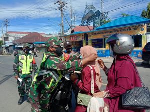 BARABAI-Pos Tepradu Simpang Tiga Pantai Hambawang terdiri dari anggota Kodim 1002/Barabai, Polres HST, Satpol PP kab.HST, Dinas Perhubungan dan Dinas Kesehatan Kab. Hulu Sungai Tengah intensifkan melaksanakan pendisplinan protokol kesehatan kepada penggun jalan.Kamis (20/05).