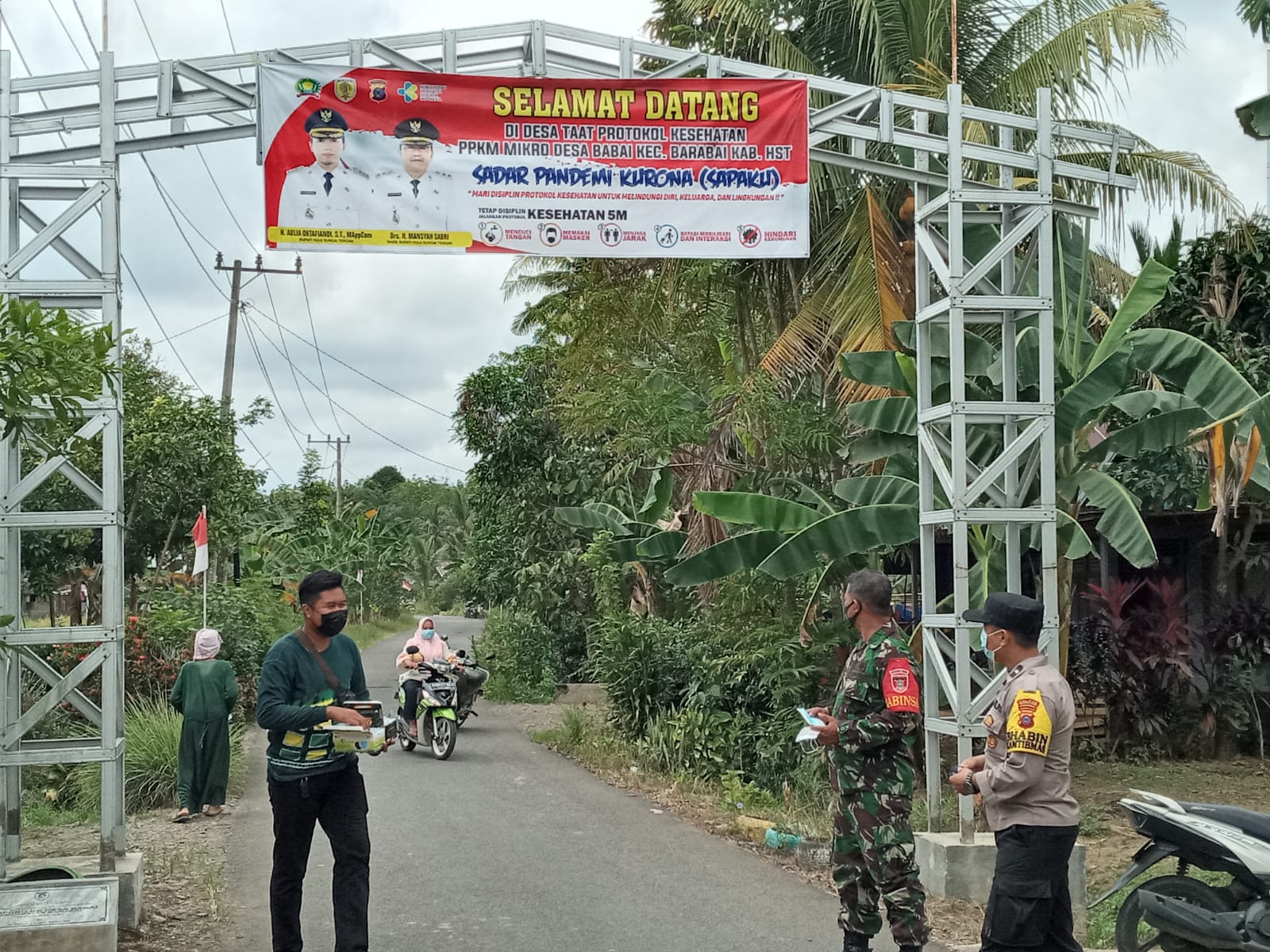 BARABAI-Pemberlakuan Pembatasan Kegiatan Masyarakat (PPKM) bersekala Mikro sebagai upaya memutus rantai penularan dan penyebaran virus corona terus digalakkan oleh Babinsa, Bhabinkamtibmas dan anggota Satgas Covid-19.