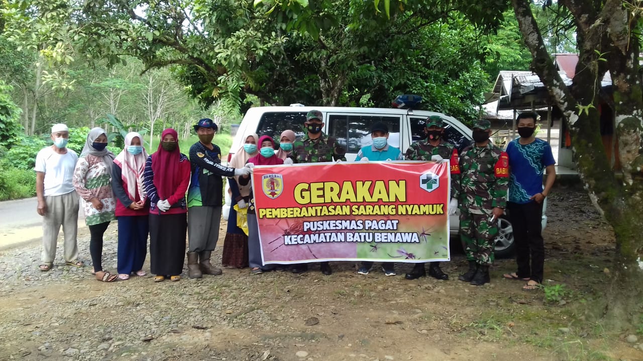 BARABAI-Mengatisispasi penyebaran virus dengue yang ditularkan gigitan nyamuk Aedes Aegypti sebagai penyebab penyakit Demam Berdarah Dengue (DBD), Puskesmas Batu Benawa gandeng Koramil 1002-07/Pagat melakukan sosialisasi gerakan PSN (Pembelajaran Sarang Nyamuk) kepada warga masyarakat Desa Haliau Kecamatan Batu Benawa Kab.Huku Sungai Tengah.Sabtu (09/01).