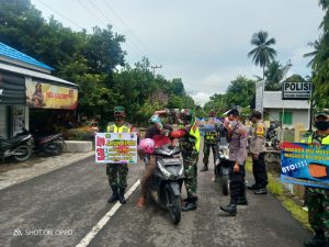 “Dalam pelaksanaan tersebut kami Memberikan himbauan kepada masyarakat tentang pentingnya 4M yaitu Memakai Masker, Mencuci Tangan, Menjaga Jarak dan menghindari kerumunan serta memberikan teguran bagi warga yang tidak mematuhi disiplin protokol kesehatan.”terangnya.