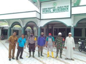 BARABAI – TNI Polri dan warga masyarakat Hulu Sungai Tengah kompak cegah penyebaran Coronavirus Disease 2019 atau Covid-19 melaksanakan penyemprotan disinfektan.