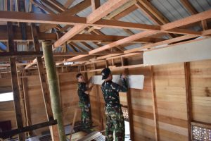 HULU SUNGAI TENGAH-Pekerjaan disasaran fisik perenovasian Mushola Noor Iman terus ditingkatkan, terlihat anggota Satgas TMMD Ke-112 Kodim 1002/Hulu Sungai Tengah (HST) saat ini sudah memasuki tahap pemasangan plafon Mushola Noor Iman yang berada di Desa Kasarangan RT. 008 RW. 005 Kecamatan Labuan Amas Utara,