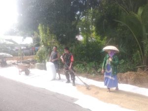Salah satunya adalah yang dilakukan oleh Sertu Baharuddin Babinsa Koramil 1002-03/Haruyan membantu warga binaan menjemur padi.Minggu (22/05)