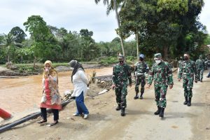 Sejenak meninjau kondisi Makodim 1002/Barabai, Kasrem 101/Antasari bersama rombongan melanjutkan peninjauan lokasi terdampak banjir di desa Baru-Waki kecamatan Batu Benawa.