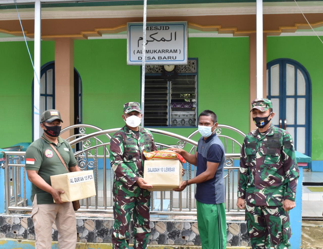 Dilokasi musibah banjir Kasrem 101/Ant menyalurkan bantuan Al Qur’an di Masjid Al Mukarram dan Beras kepada warga masyarakat korban musibah banjir.