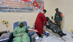 Dandim 1002/HST Letkol Kav Gagang Prawadhana.SIP.,M.Han menuturan selain untuk untuk menyambut peringatan HUT Kodam VI/Mulawarman Ke-64 tahun ini, kegiatan bakti sosial donor darah dilakukan sebagai wujud peduli kemanusiaan TNI dalam membantu PMI.”katanya