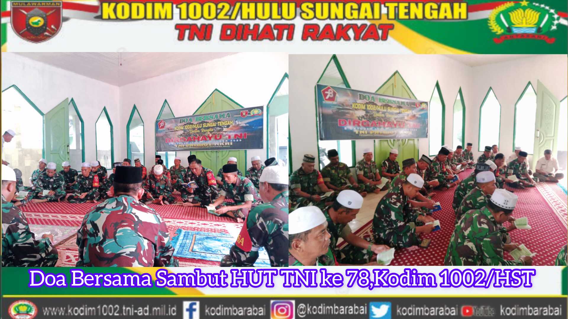 Do’a Bersama dalam rangka sambut dan peringati Hari Ulang Tahun TNI Ke 78 tahun bertempat di Musholla Al Khairul Fahmi Makodim 1002/HST jalan Telaga Padawangan Kelurahan Barabai Timur Kecamatan Barabai Kab.Hulu Sungai Tengah, setelah pelaksanaan sholat asyar