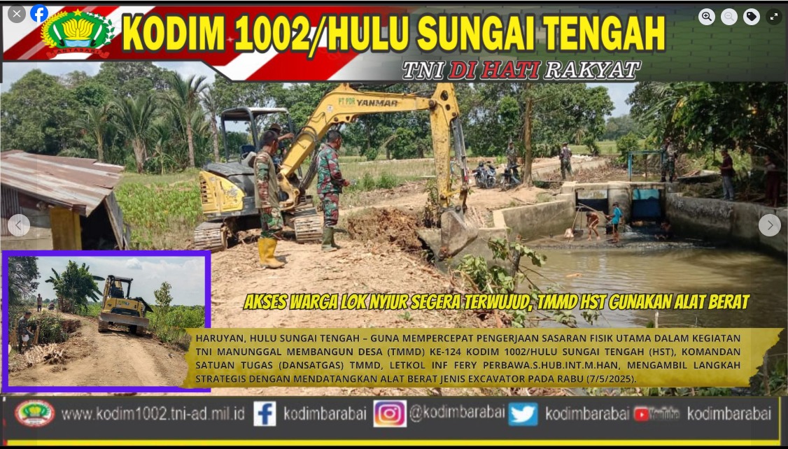 HARUYAN, HULU SUNGAI TENGAH – Guna mempercepat pengerjaan sasaran fisik utama dalam kegiatan TNI Manunggal Membangun Desa (TMMD) ke-124 Kodim 1002/Hulu Sungai Tengah (HST), Komandan Satuan Tugas (Dansatgas) TMMD, Letkol Inf Fery Perbawa.S.hub.Int.M.Han, mengambil langkah strategis dengan mendatangkan alat berat jenis excavator pada Rabu (7/5/2025).