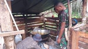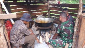 BARABAI – Satgas TNI Manunggal Membangun Desa (TMMD) ke-107 tahun 2020 Kodim 1002/Barabai melaksanakan komsos dengan pembuat Gula Aren,Selasa (31/3).