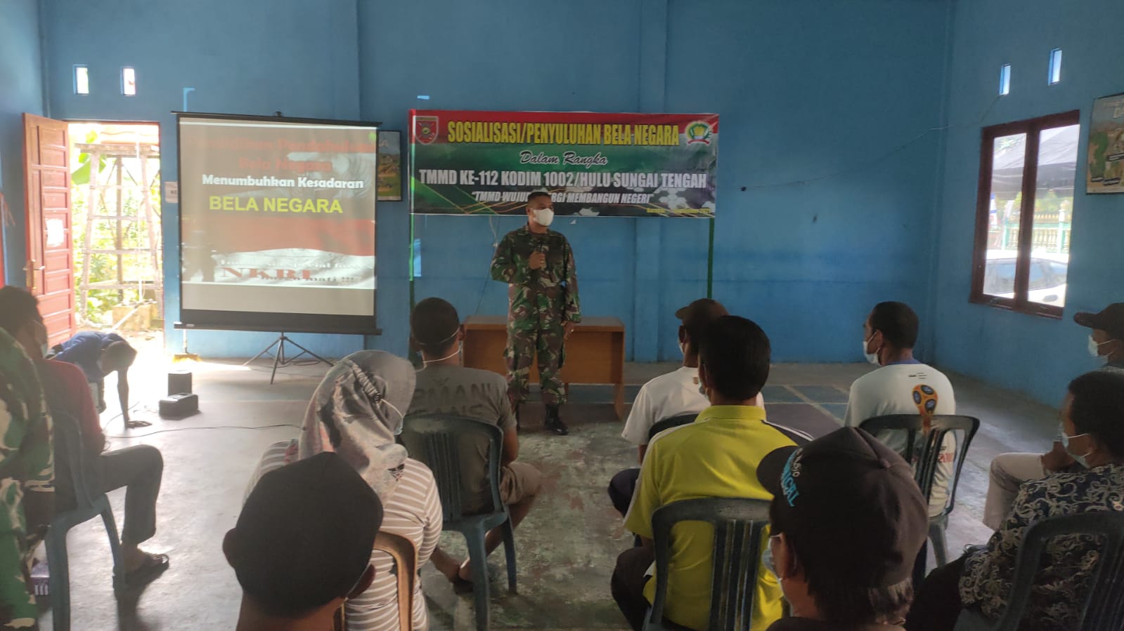 Seperti yang dilakukan, Jumat, (17/9/2021), Satgas TMMD Ke-112 Kodim 1002/HST di Gedung Bulu Tangkis Desa Rantau Keminting, Kecamatan Labuan Amas Utara dengan melaksanakan sasaran non fisik penyuluhan bela negara.