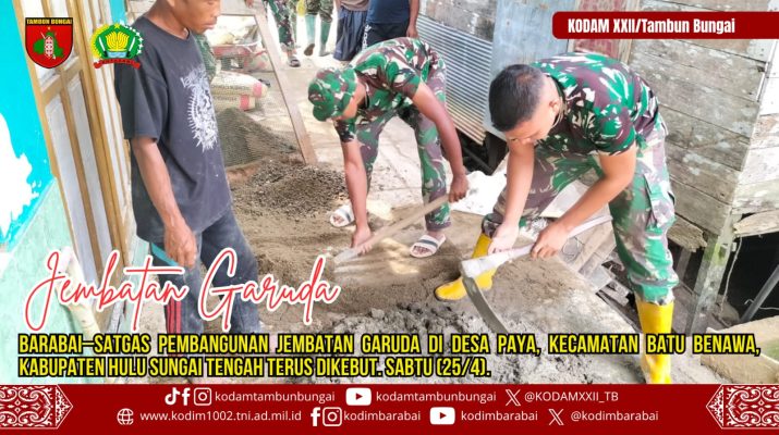 Dengan sinergi antara TNI dan masyarakat, pembangunan Jembatan Garuda diharapkan segera rampung dan memberikan dampak positif bagi kelancaran transportasi serta peningkatan perekonomian warga sekitar.(pen1002hst).