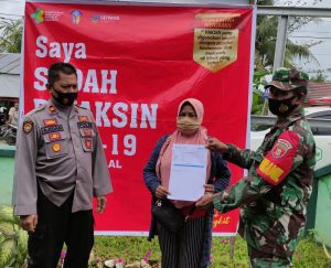 Danramil 1002-05/Pandawan Letnan Satu Inf H.Husni Tamrin mengatakan, kegiatan itu sebagai upaya mensukseskan pelaksanaan vaksinasi nasional. Vaksinasi menurutnya bertujuan untuk mendukung program pemerintah dalam membentuk kekebalan kelompok (herd immunity). Rabu (14/07/21).