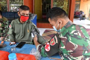 HULU SUNGAI TENGAH-Pelaksanaan TNI Manunggal Membangun Desa (TMMD) Reguler Ke-112 Kodim 1002/Hulu Sungai Tengah (HST) TA.2021, selain melaksanakan sasaran fisik, juga kegiatan non fisik, seperti diantaranya pemeriksaan kesehatan.