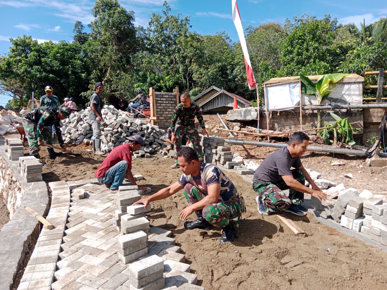 Dengan penuh semangat, mereka kembali bekerja, meratakan material, dan melakukan tahapan pembangunan lainnya.