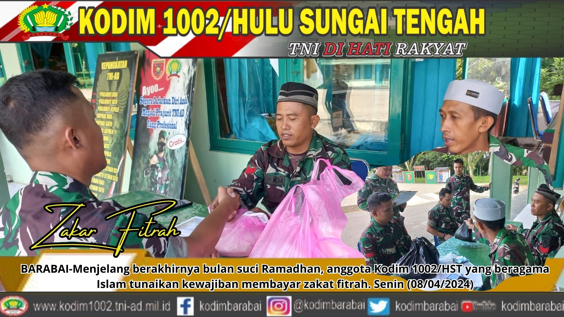 BARABAI-Menjelang berakhirnya bulan suci Ramadhan, anggota Kodim 1002/HST yang beragama Islam tunaikan kewajiban membayar zakat fitrah. Senin (08/04/2024)