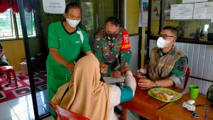 Pelayanan vaksinasi berlangsung di kantor desa Banua Supanggal didampingi oleh Babinsa Serma M.Shaleh dan para perangkat desa setempat.
