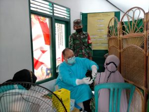 BARABAI-Sebagai upaya mensukseskan pelaksanaan vaksinasi nasional, Koramil 1002-07/Batu Bernawa Kodim 1002/HST bekerjasama dengan Puskesmas Batu Benawa melaksanakan kegiatan serbuan vaksinasi covid-19 gratis untuk masyarakat umum.Senin (12/07)