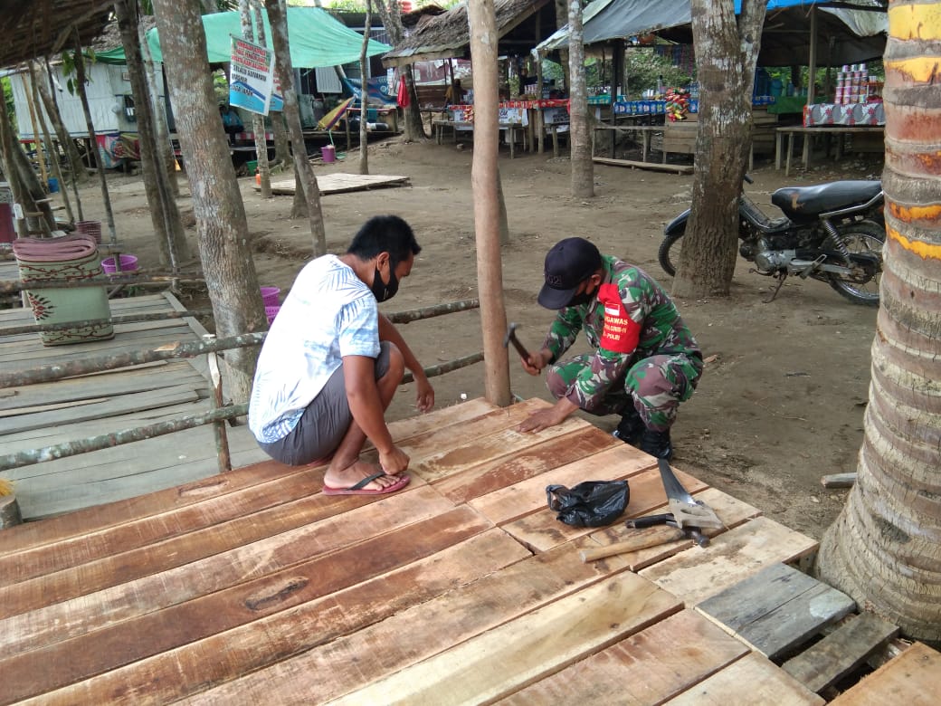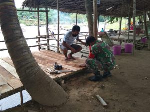 Seperti yang dilakukan Babinsa Kampung Baru Koramil 1002-07/Pagat Serdang Tajuddin melaksanakan Komunikasi Sosial (Komsos) sekaligus membantu perbaikan gazibo milik salah satu warga binaan yang rusak diterjang banjir sungai Barabai beberapa waktu yang lalu.