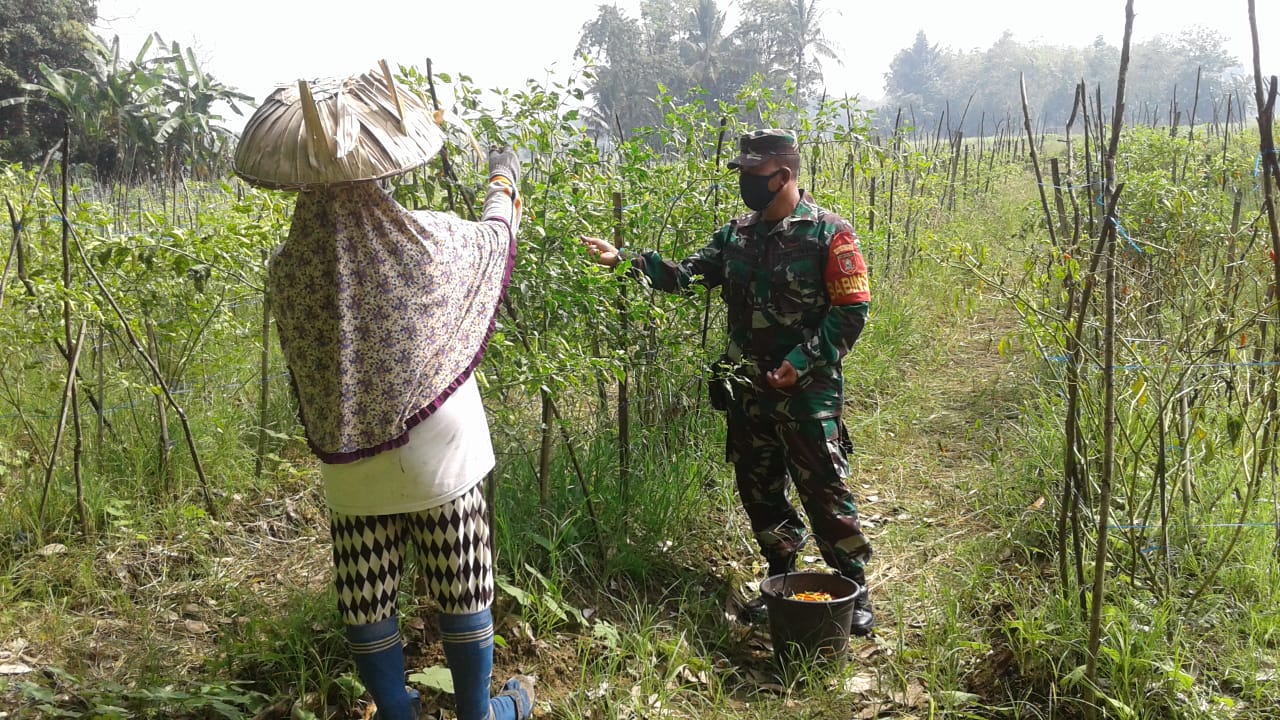Dalam kesempatan tersebut Serda Yunus Suyanto memberikan sedikit masukan dan semangat kepada ibu Mursida pemilik lahan Cabe Tanjung agar tetap semangat biarpun ditengah pandemi seperti sekarang ini.
