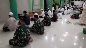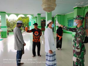 Lebih lanjut Kapten Inf Moh Alip Suroso menjelaskan bahwa sebelum memasuki masjid para jama’ah diwajibkan dulu mencuci tangan kemudian dilakukan pengecekan suhu badan oleh petugas dari GTPP Covid-19 Kab. Hulu Sungai Tengah serta tiap jamaah wajib menggunakan masker.”tuturnya.