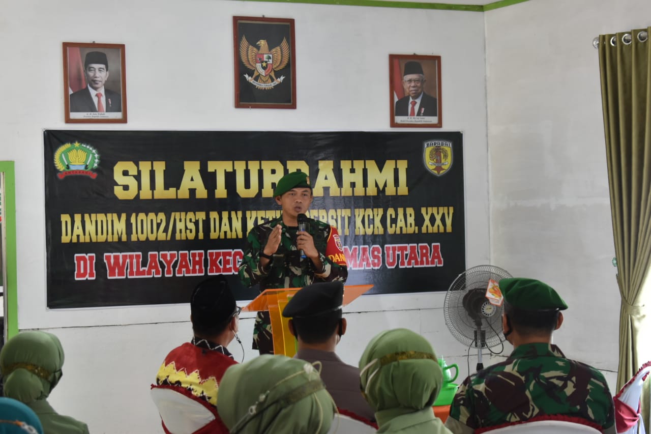 BARABAI-Komandan Kodim 1002/HST Letkol Kav Gagang Prawardhana bersama Ketua Persit Kartika Chandra Kirana Cabang XXV Koorcab Rem 101 PD VI/Mulawarman bersilaturrahmi dengan unsur pimpinan kecamatan dan Alim Ulama, Tokoh Masyarakat.