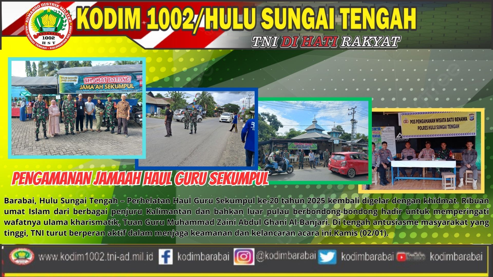 “TNI berkomitmen untuk memberikan pelayanan terbaik kepada seluruh masyarakat, khususnya pada momen-momen penting seperti Haul Guru Sekumpul ini,” tegas Dandim 1002/HST, Letkol Inf Fery Perbawa.