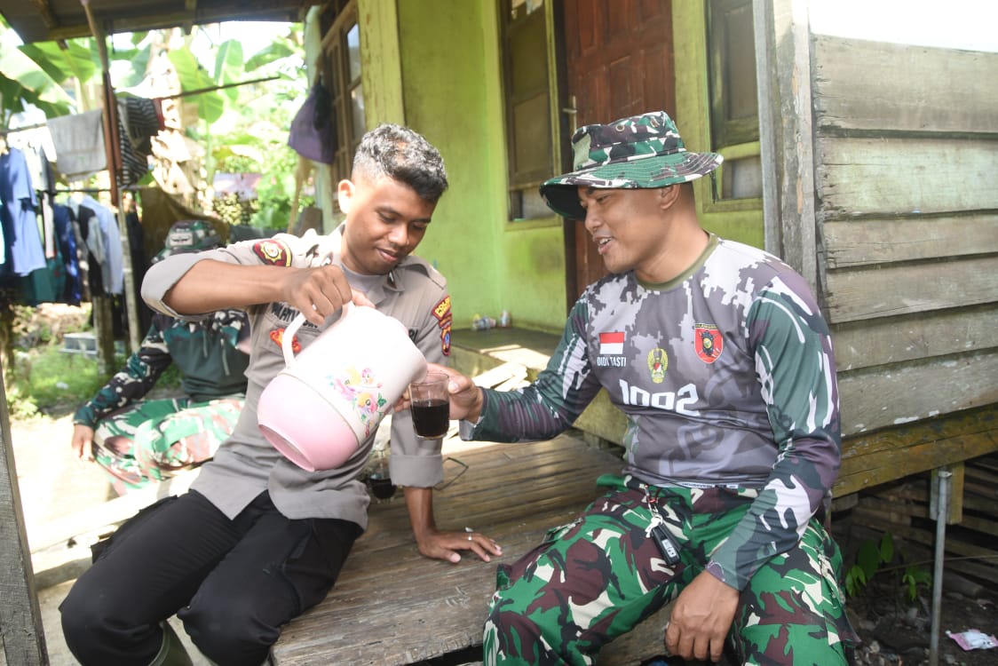 Momen kebersamaan antara anggota TNI dan Polri terpantau dalam berbagai kegiatan. Salah satunya terlihat pada Selasa (27/5), di mana anggota Polri tampak menyuguhkan minuman kepada anggota TNI yang sedang beristirahat di sela-sela kegiatan rehabilitasi Rumah Tidak Layak Huni (RTLH).