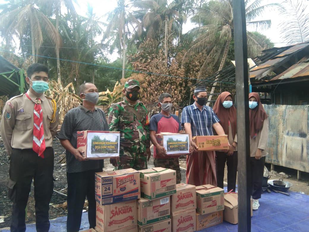 BARABAI-Anggota Saka Wira Kartika Ranting 03/Haruyan menyerahkan bantuan sembako dan pakaian layak pakai kepada warga yang terkena musibah kebakaran di Desa Tabat Padang RT.002 RW.001 Kecamatan Haruyan Kabupaten Hulu Sungai Tengah (HST).Sabtu (09/01).