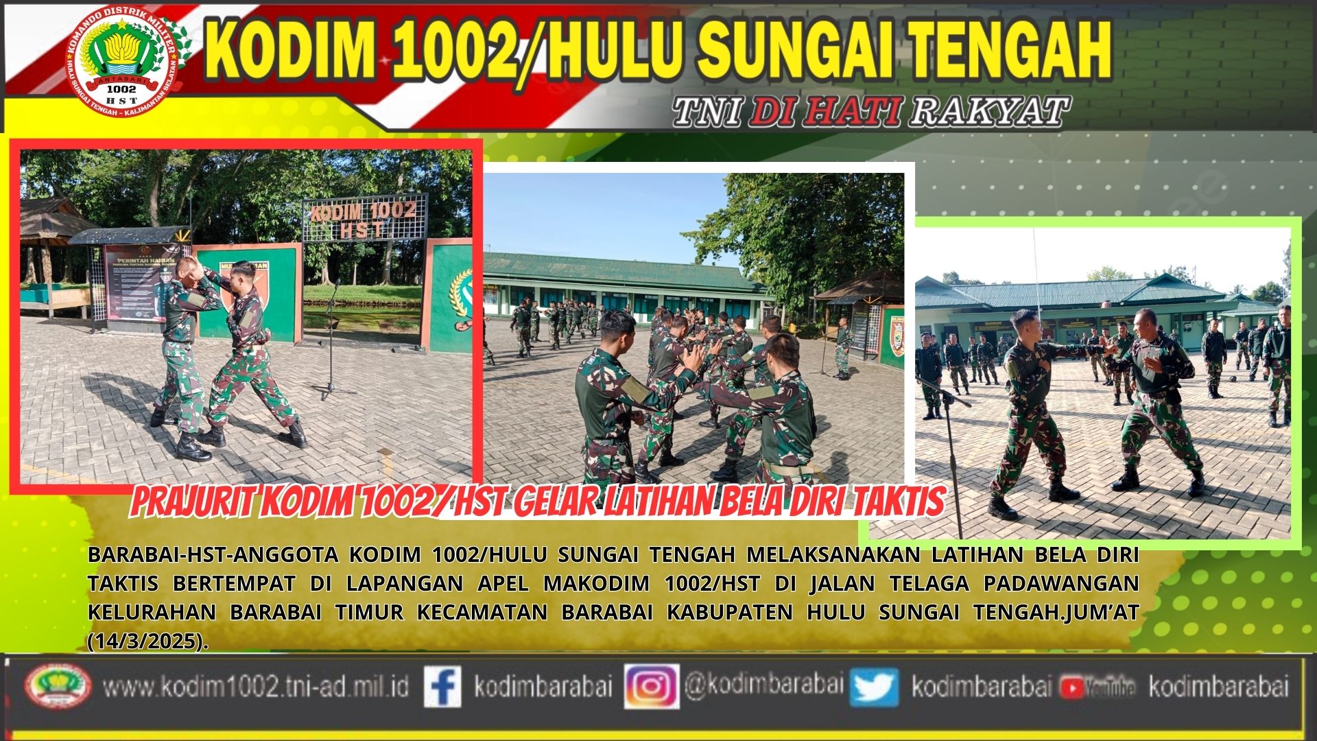 Barabai-HST-Anggota Kodim 1002/Hulu Sungai Tengah melaksanakan latihan bela diri taktis bertempat di lapangan apel Makodim 1002/HST di jalan Telaga Padawangan Kelurahan Barabai Timur Kecamatan