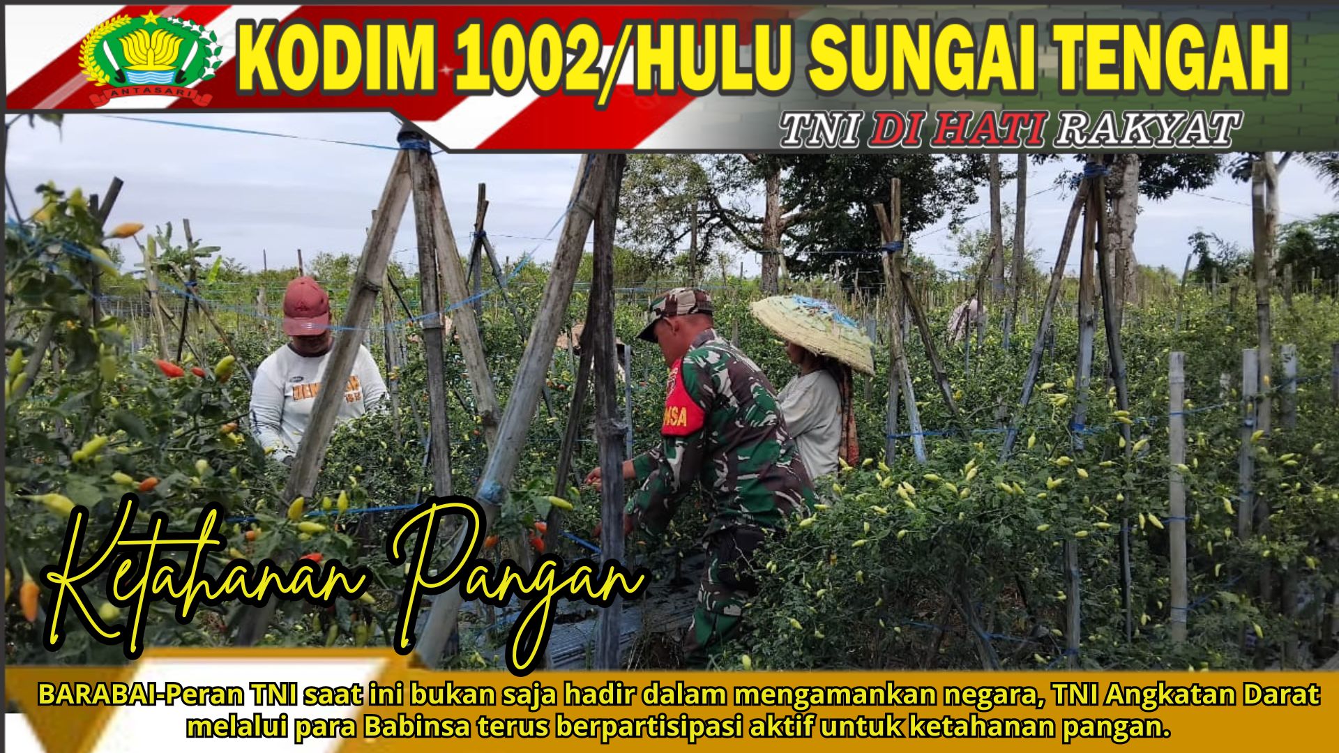 BARABAI-Peran TNI saat ini bukan saja hadir dalam mengamankan negara, TNI Angkatan Darat melalui para Babinsa terus berpartisipasi aktif untuk ketahanan pangan. Seperti yang