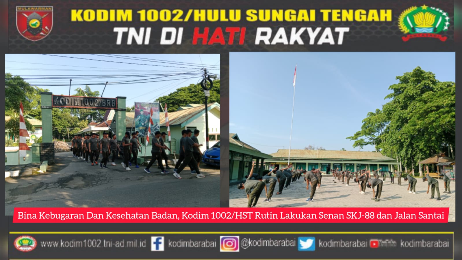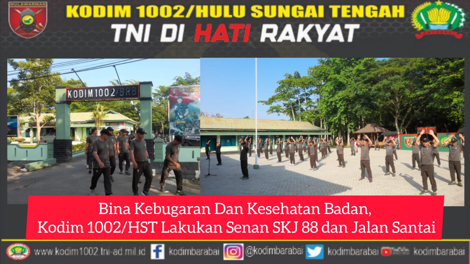 Bina Kebugaran Dan Kesehatan Badan, Kodim 1002/HST Lakukan Senan SKJ 88 dan Jalan Santai
