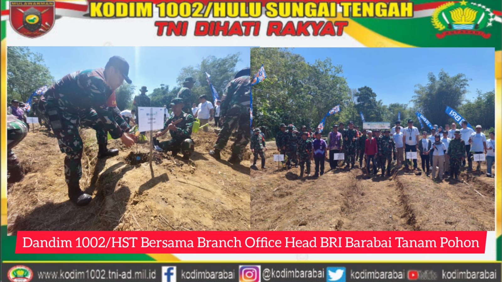 BARABAI-Komanadan Kodim 1002/HST Letkol Kav Gagang Prawardhana, S.I.P, M.Han bersama Branch Office Head BRI Barabai Affis Broto Kusumo melaksanakan penanaman pohon di desa aluan