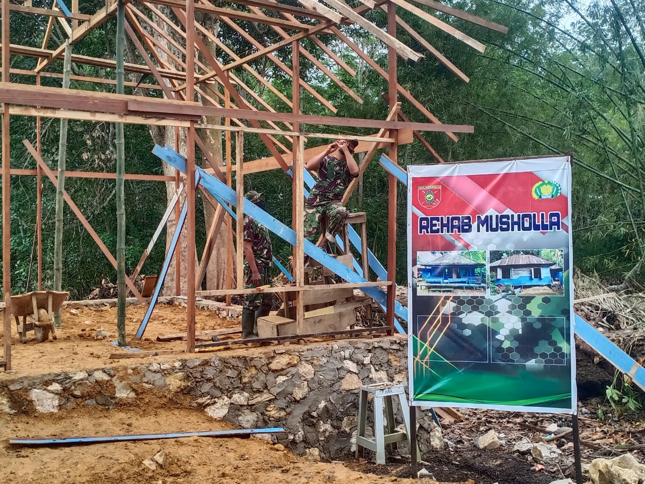 “Kami optimis penyelesaian renovasi musholla ini berjalan lancar, walau cuaca menjadi kendala, namun kekuatan dan semangat satgas TMM bersama warga tak terbendung ingin secepat mungkin merampungkan perenovasian ini,”katanya