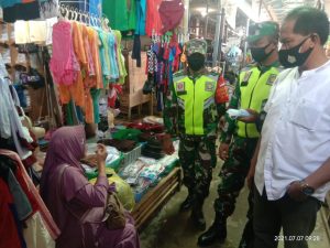 Salah satunya penegakkan disiplin protokol kesehatan kepada para pedagang dan pembeli di pasar Keramat Barabai.Rabu (07/07).